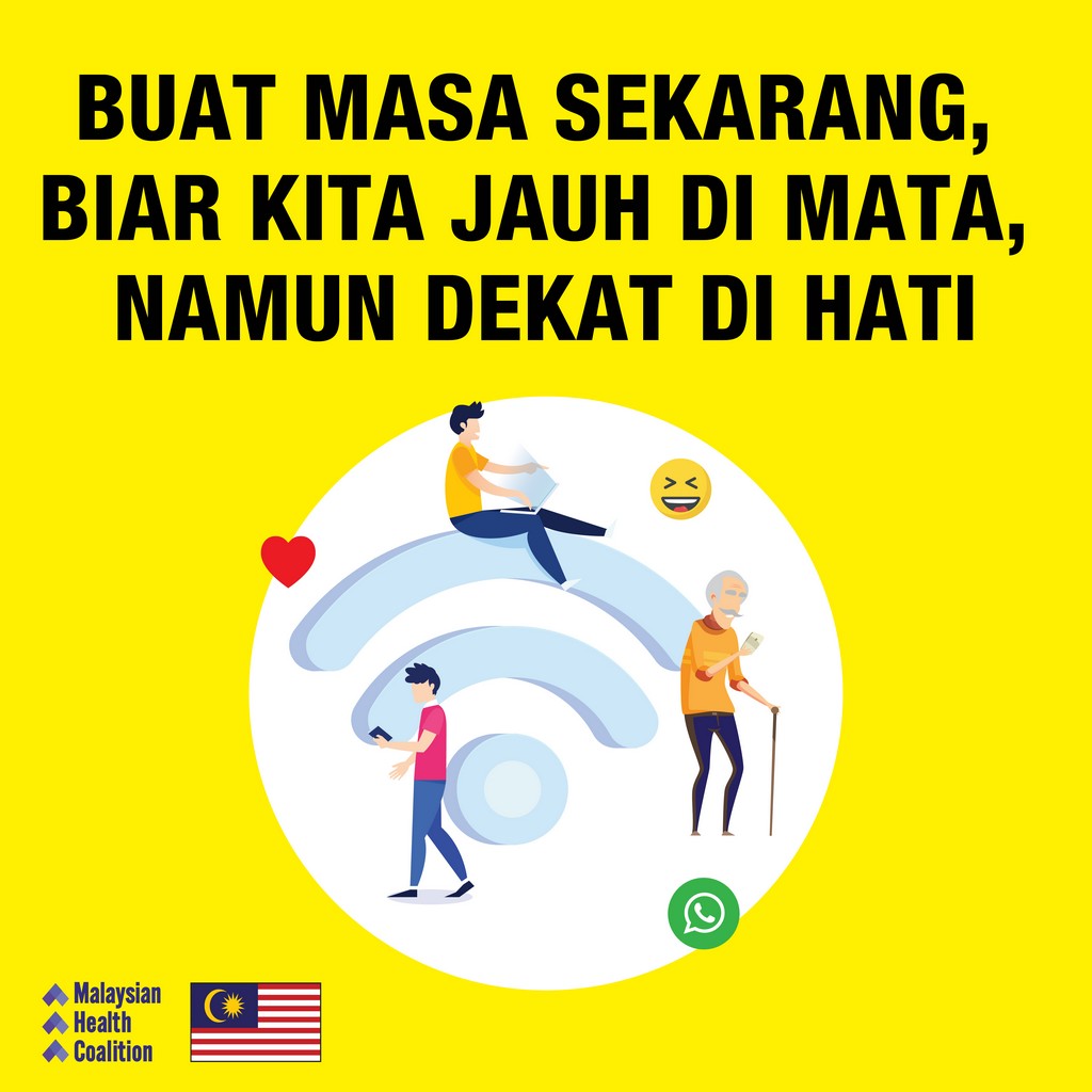 Berjauhan daripada orang tersayang semasa tempoh PKP adalah cara terbaik untuk menunjukkan kasih sayang kepada mereka. Elakkan berjumpa dengan keluarga dan rakan-rakan terutamanya warga emas atau yang mempunyai penyakit kronik, kecuali jika ada kecemasan tertentu. Lindungilah kesihatan mereka dengan hanya berhubung melalui panggilan telefon, panggilan video atau media sosial.